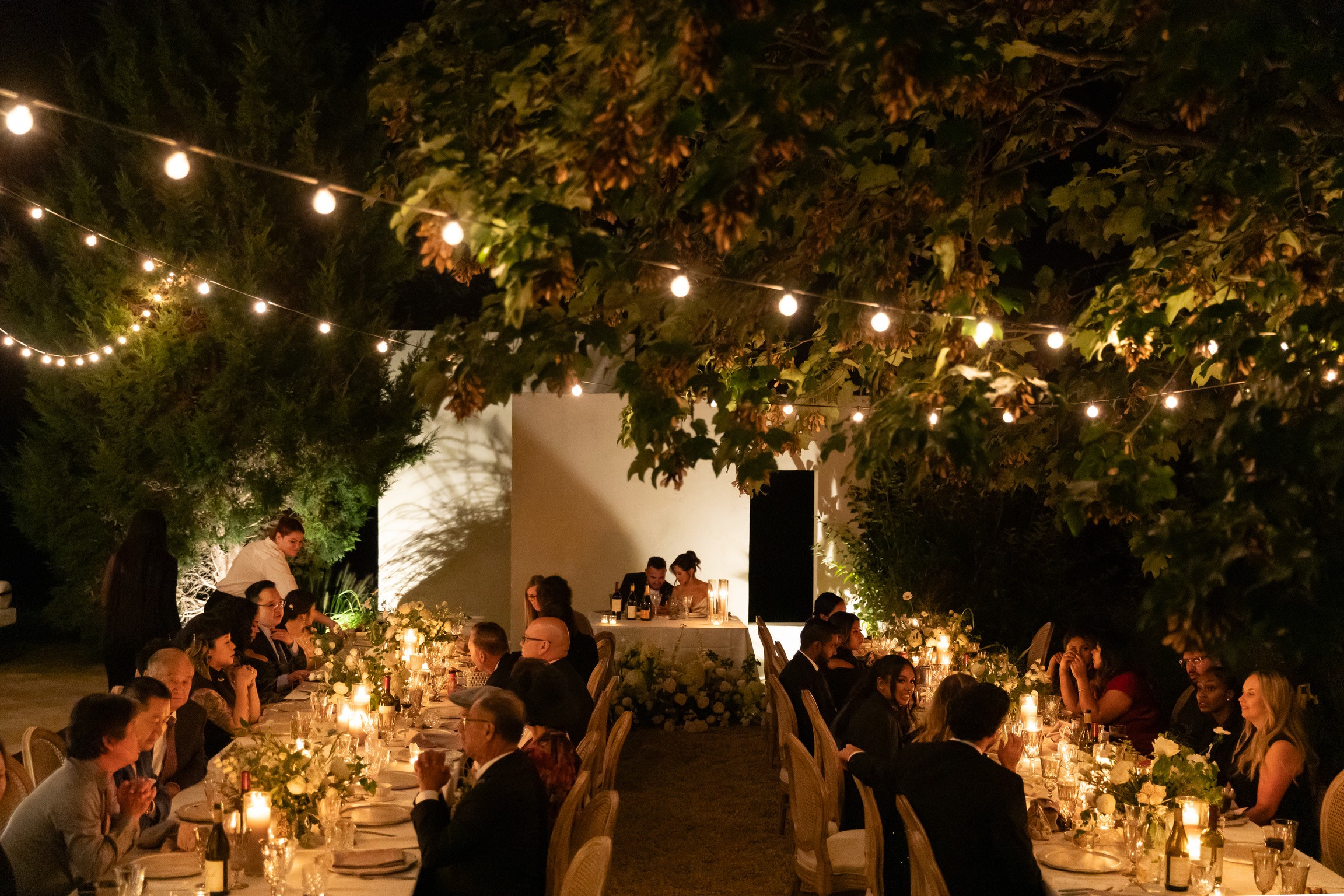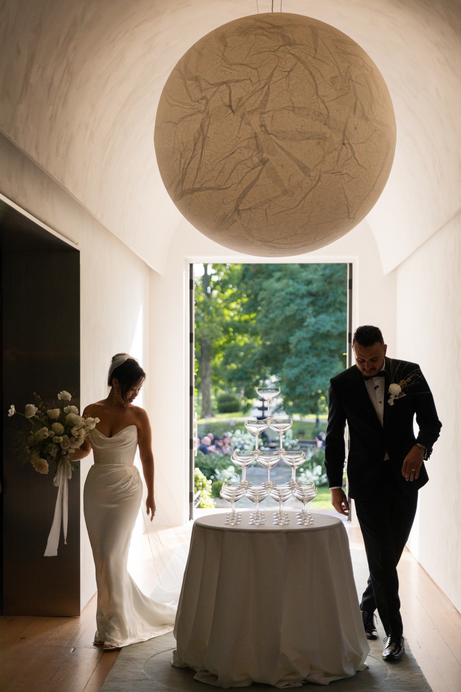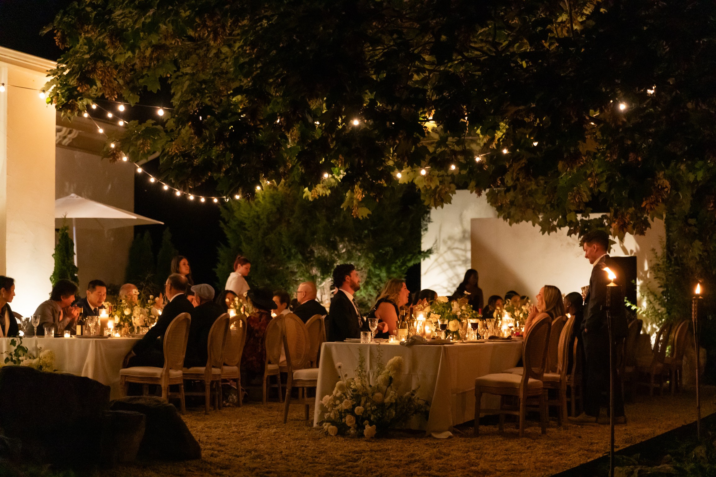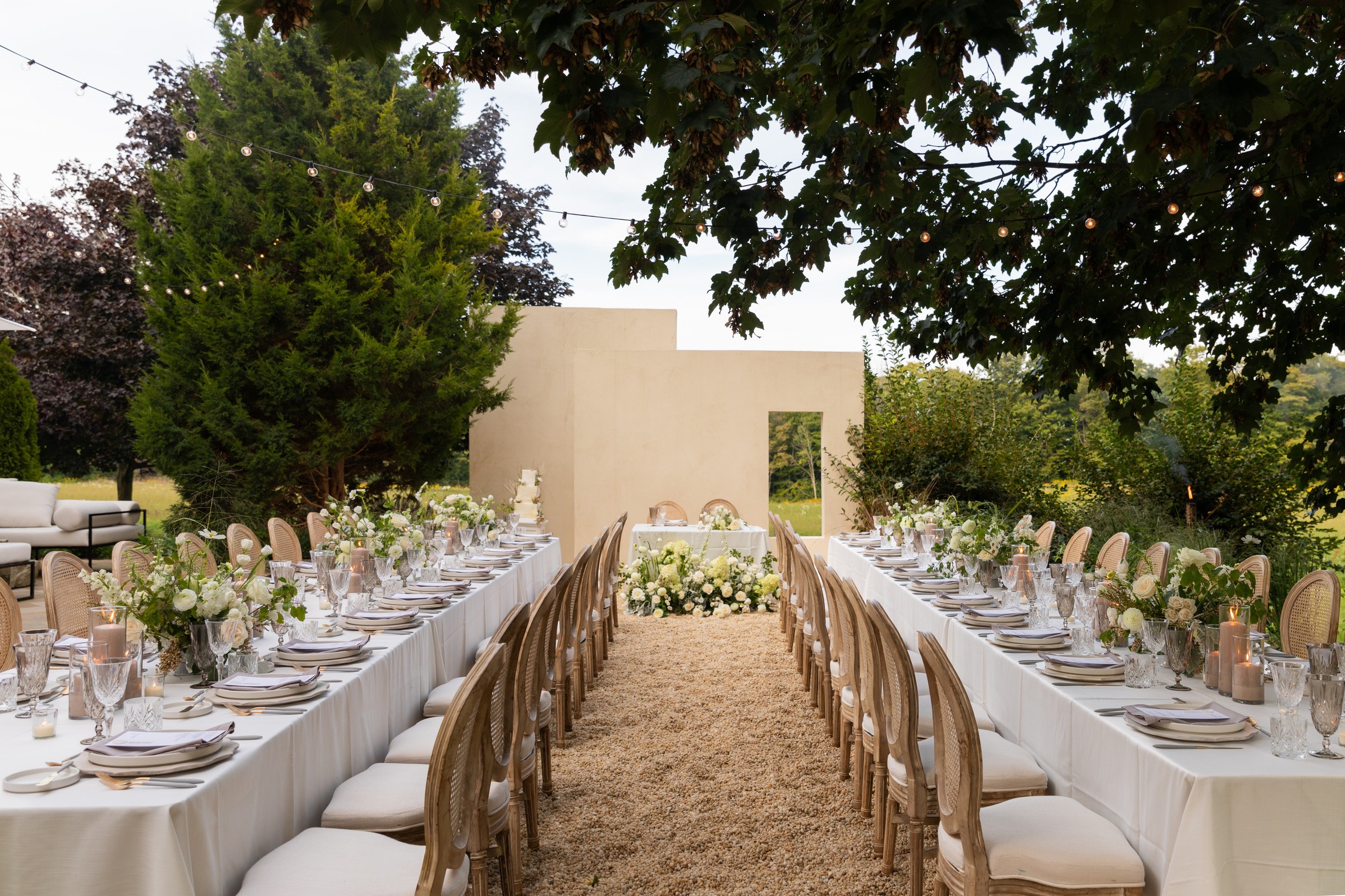 On a wedding day, it’s the way everything sits together that stays in your memory. From tablescapes that seem to gently cascade down a courtyard, to a single intimate table tucked inside by the fire, each element is placed so the day feels unhurried and deeply felt. For some couples that might mean soft, tonal layers and clustered candlelight; for others, bolder colour, sculptural flowers, or almost nothing at all, letting the room and landscape do most of the work. The spaces in between matter just as much as what’s on the table. Guests might arrive through a quiet hallway where a champagne tower waits for its moment, pause by a mantel lit with a few tall candles, then drift outside under strings of light or an open sky. Paths, seating, and small transitions are all considered so movement feels natural—no rush, no confusion, just a gentle, steady flow from ceremony to drinks to dinner. No two weddings look the same. The mood, palette, and details shift with the couple, the season, and the space. What remains constant is the intention: to build an atmosphere that feels intimate, meaningful, and a little bit cinematic; less like an event you attended, and more like an experience you fully inhabited.